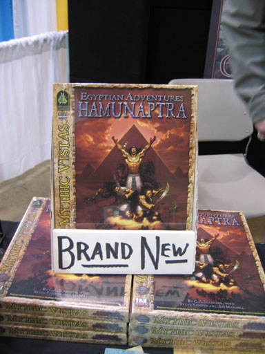 I dropped by and said hi to Hal at the Green Ronin booth and it was a good thing I did. Egyptian Adventures: Hamunaptra may have already hit the stores. But its in a box. In fact, its the first Green Ronin product in a box. So, you can bet that that sucker is shrink wrapped at your local game store. Whats in it?